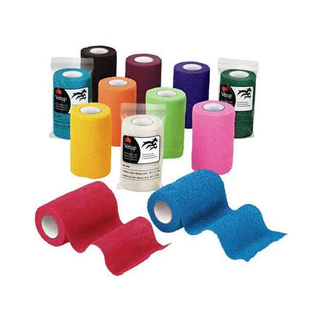 3M VetWrap, trusted performance for more than 40 years. Versatile, high performance bandaging tape for a broad spectrum of applications support, compression, catheter and bandage secural. This product sticks to itself, not to hair, can be torn by hand and is hypoallergenic with latex free materials.