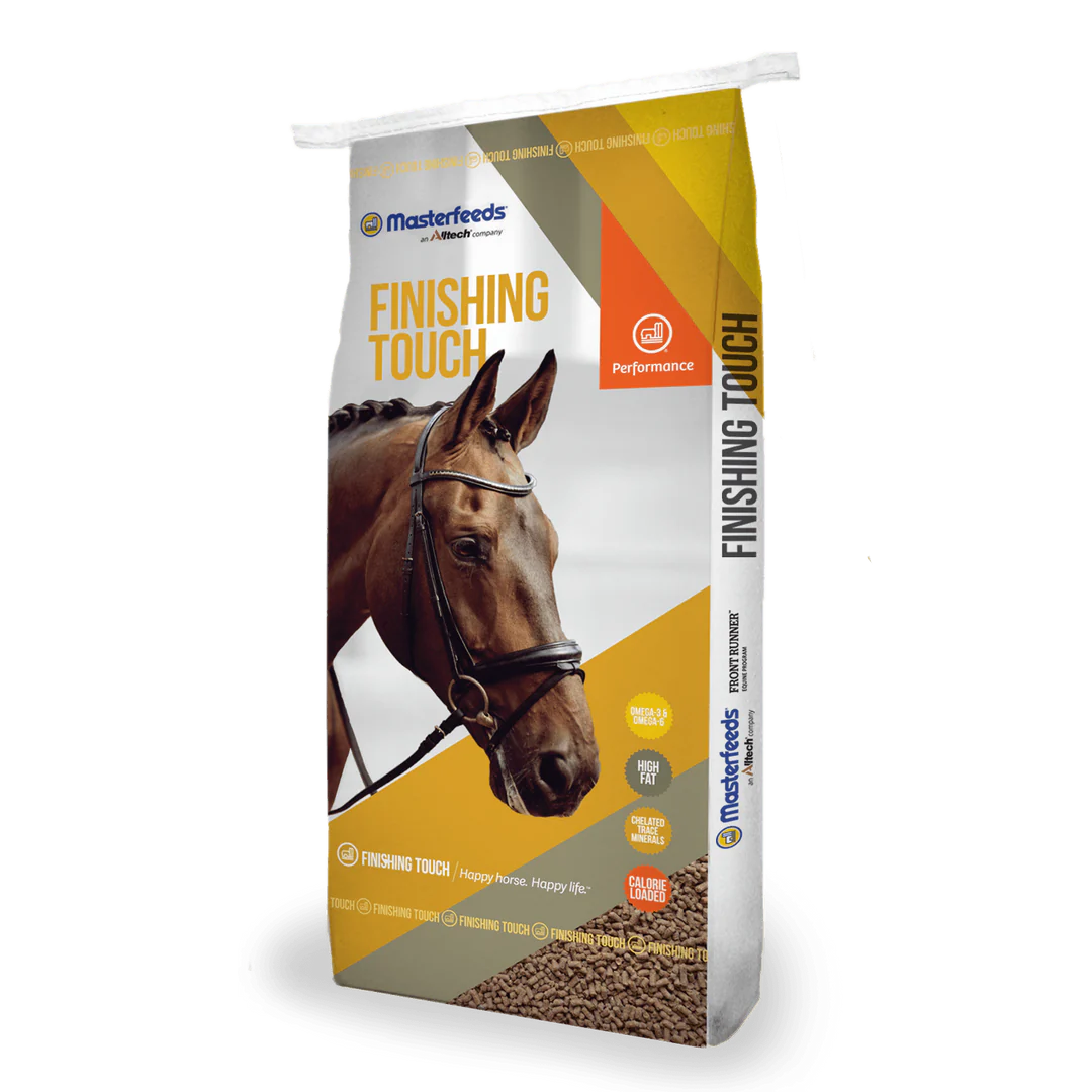 Masterfeeds Finishing Touch (pellet) is a smart energy addition to any developmental diet. This high fat supplement is designed to be topdressed on a balanced complete feed to increase the caloric density of the diet and add fat calories as an energy source. A very palatable formula, beneficial to any horse for improved performance, weight gain and coat condition. Finishing Touch is an excellent choice for extra fit and finish on sale and show stock and for enhancing fertility during breeding season for both mares and stallions.