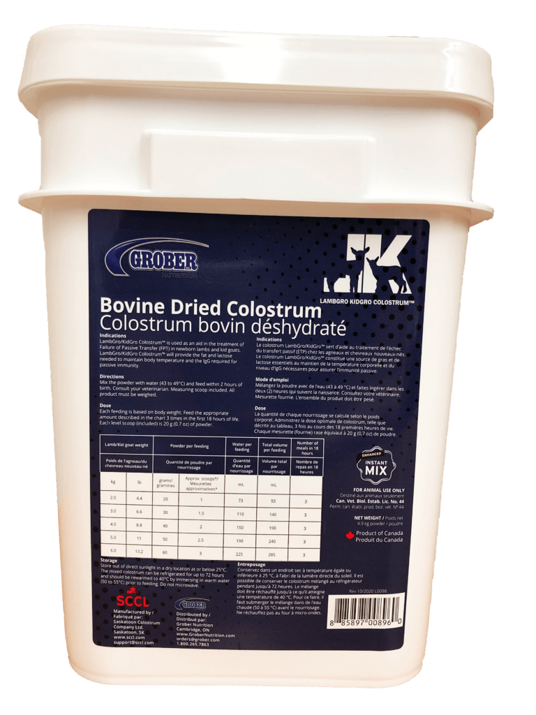 LambGro KidGro Colostrum™ is a premium colostrum supplement for lambs and kids that prevents Failure of Passive Transfer (FPT) of immunity. Newborn lambs and kids should receive their first feeding of LambGro KidGro Colostrum™ as soon after birth as possible, and no later than 6 hours of age. For optimal results, 3 feedings should be delivered in the first 18 hours of life.