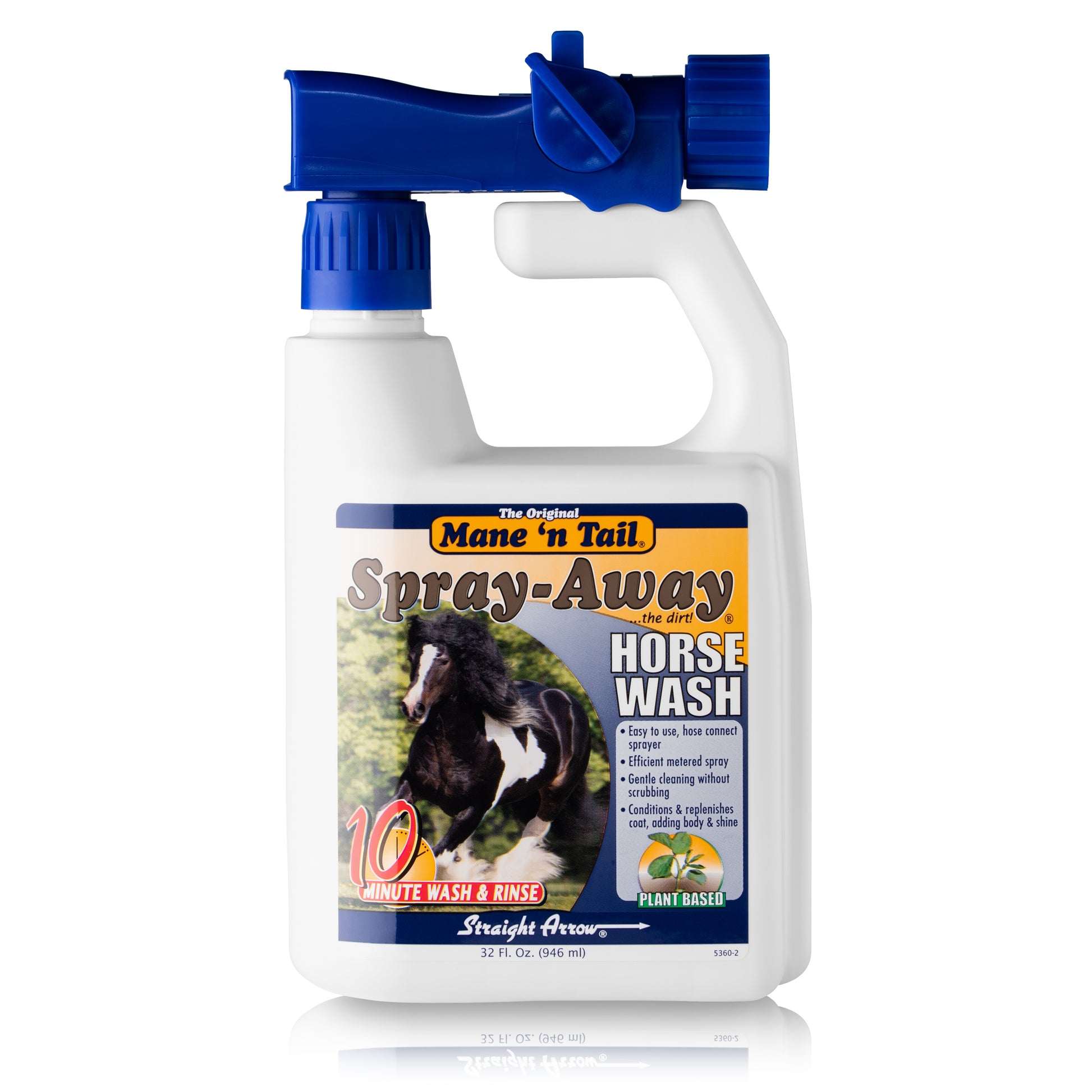 Mane 'n Tail® Spray-Away™ Horse Wash is the safe, quick body wash solution that horse owners can rest assured is safe to use as often as needed. Spray-Away cleans deep down to the skin without scrubbing, the coat feels clean, silky and lays natural with sheen and shine. In addition manes and tails are cleaner right down to the base while helping with detangling. Spray-Away is a unique and exclusive concentrated formula which has amazing results that have to be felt to be believed. Now horse owners can feel confident knowing their horses are being cleaned safely with guaranteed results!