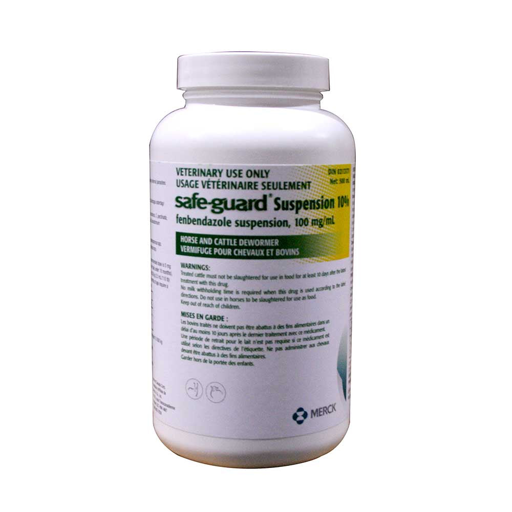 A 10% oral suspension used to control adult and developing 4th stage larvae of internal parasites in cattle. Identical to Panacur liquid. Protector gun, vent cap and strap included for application methods. Store below 25°C and do not freeze.