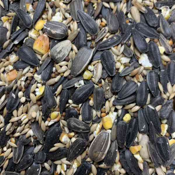 Black Oil Sunflower, Canarygrass, Canola Seed, Cracked Corn, Striped Sunflower, White and Red Millet.